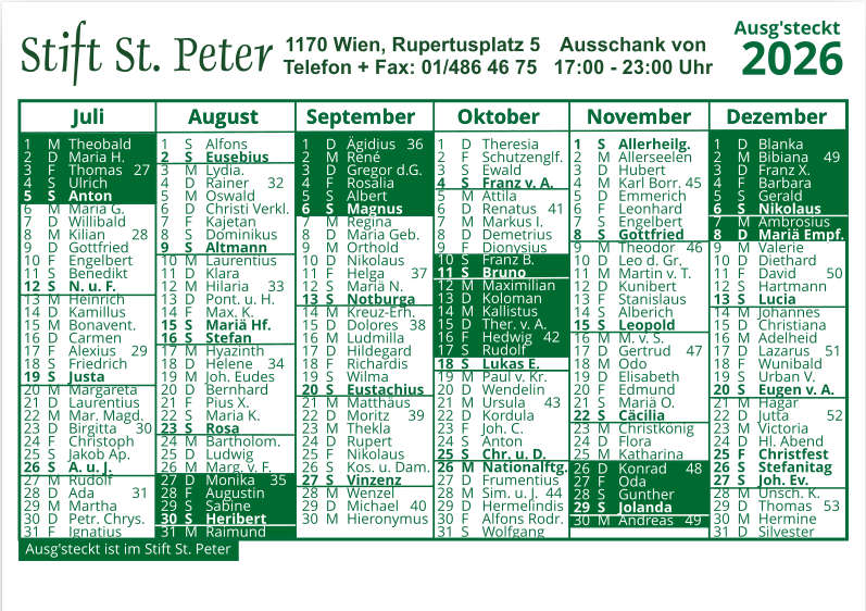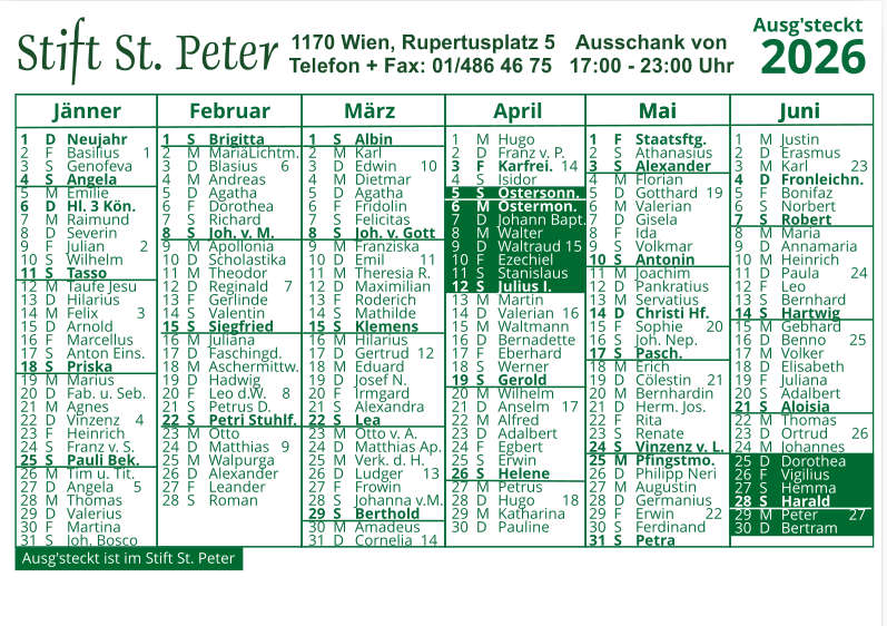 St.Peter Buschenschank Kalender 2026 S1 kpl